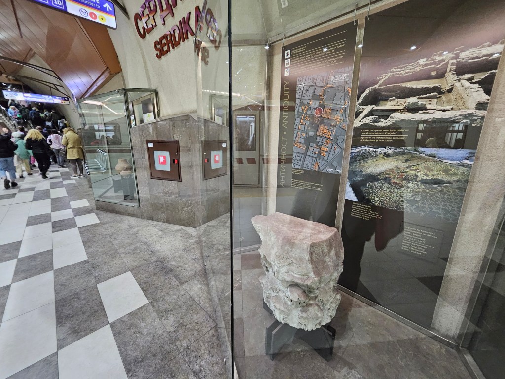 Serdika was the Roman name for Sofia and extensive Roman ruins were discovered when building a new Metro line in the city. Serdika Metro station is right in the centre of Sofia and it has been built around some of the Roman walls. There are even display cases on the platforms of Serdika station.