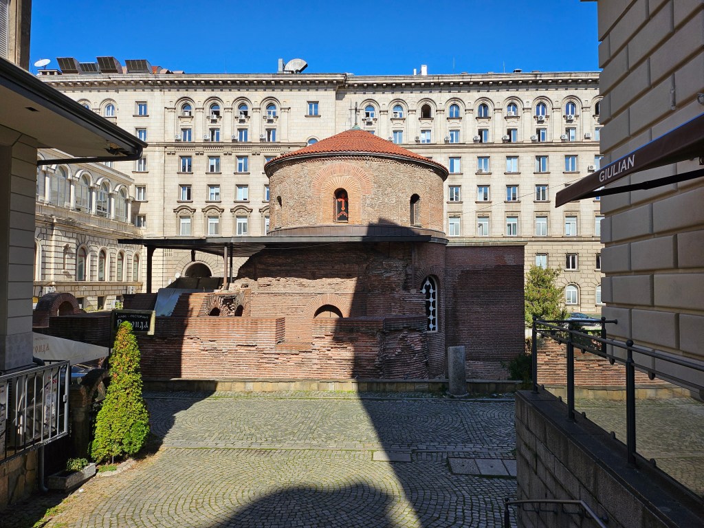 The only stop that the bus made before reaching central Sofia was to drop off some passengers, including the woman who had been sitting next to me, at Sofia airport. It then proceeded to Sofia’s main bus station, where it arrived at 12:15. From there I walked the short distance to my hotel to drop off my bag, before going on to explore Sofia.