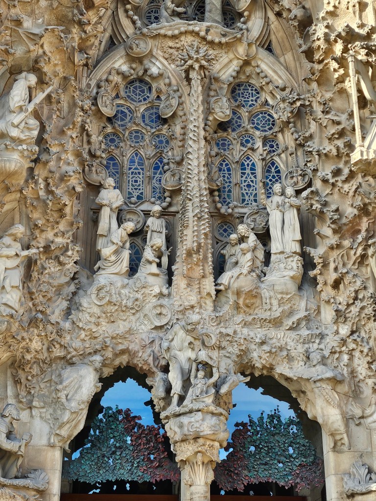 The main body of the interior of the Sagrada Familia is now largely complete, the basilica having been consecrated in 2010, although a number of external spires are still to be added. When you book your ticket you are encouraged to download a dedicated app, which includes an audio-guide to assist you as you move around inside. Entry is via the Nativity Façade on the east side of the building, festooned with elaborate carvings. The interior of the basilica is bright and multicoloured. The basic ticket that I had purchased did not give access to the crypt nor to ascend one of the towers, but did include a visit to the museum located beneath the basilica which gave more information about its history and construction.