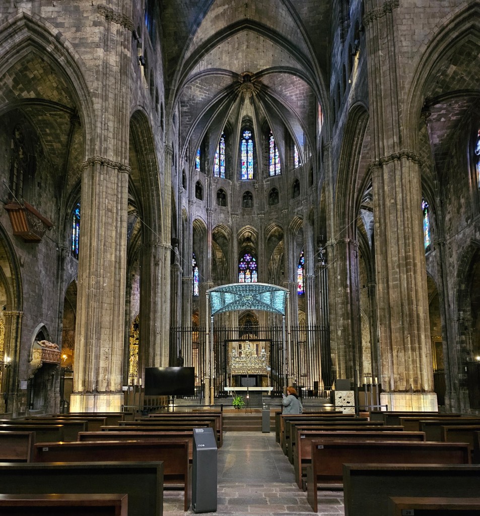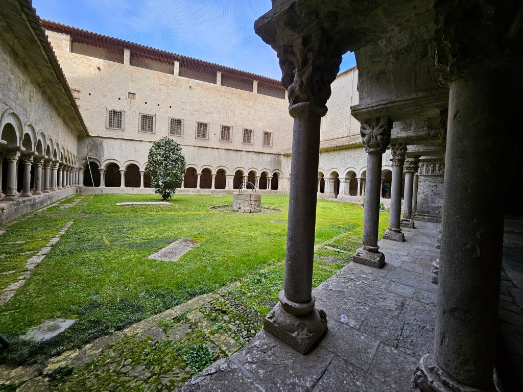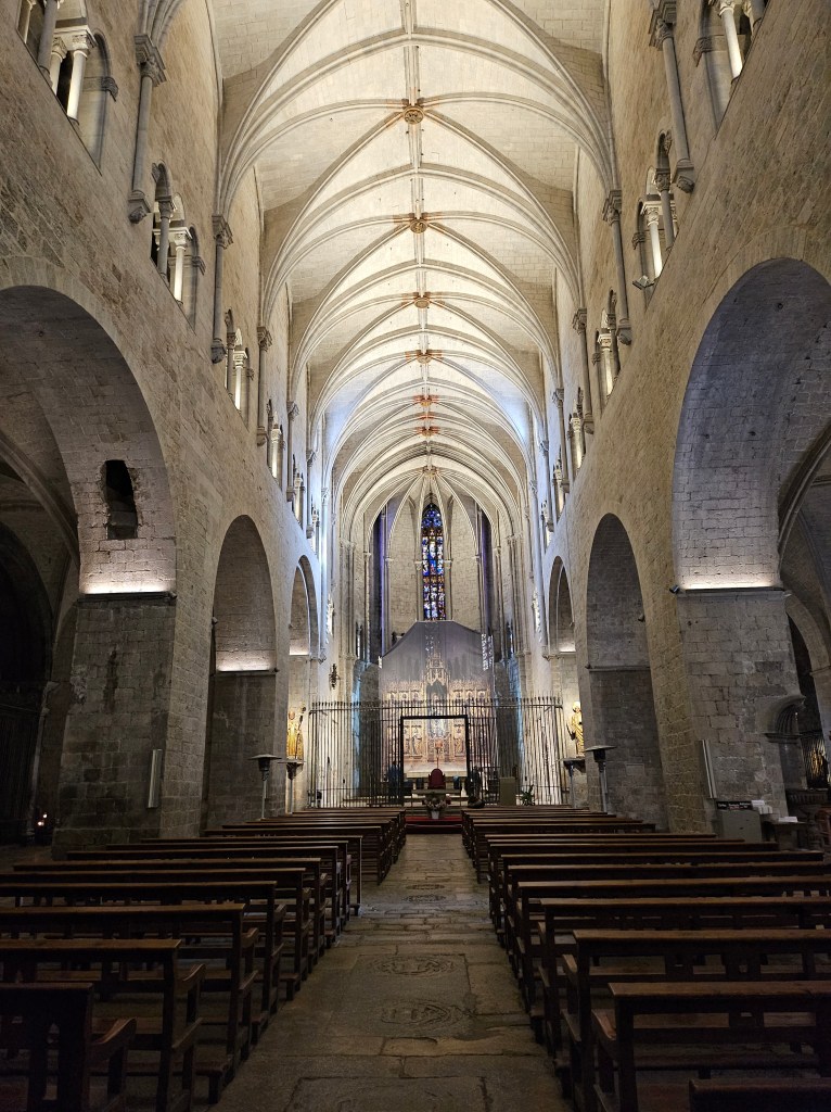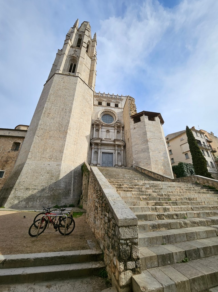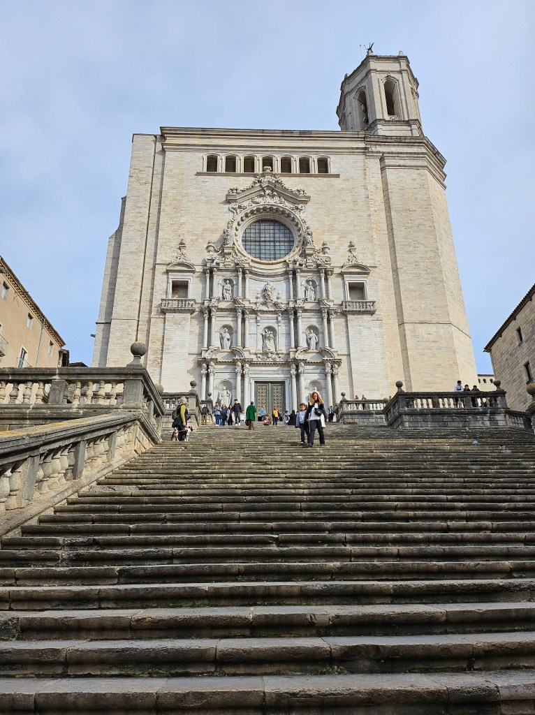 I next went to the city’s art gallery, which has an interesting collection, although a predominant focus on early religious art. The art gallery is adjacent to Girona Cathedral, which I toured with the help of a very detailed audio-guide. The cathedral has the widest nave of any Gothic cathedral in the world, being nearly twice as wide as Notre Dame in Paris. Off the main nave are numerous chapels dedicated to a variety of saints. One of them used to be dedicated to Charlemagne, who was venerated in Girona and locally made a saint. It was only following pressure from the Catholic hierarchy in the early 20th century that Girona stopped referring to ‘St Charlemagne”. The cathedral has a magnificent external staircase leading up to the west façade, which I descended when I left.