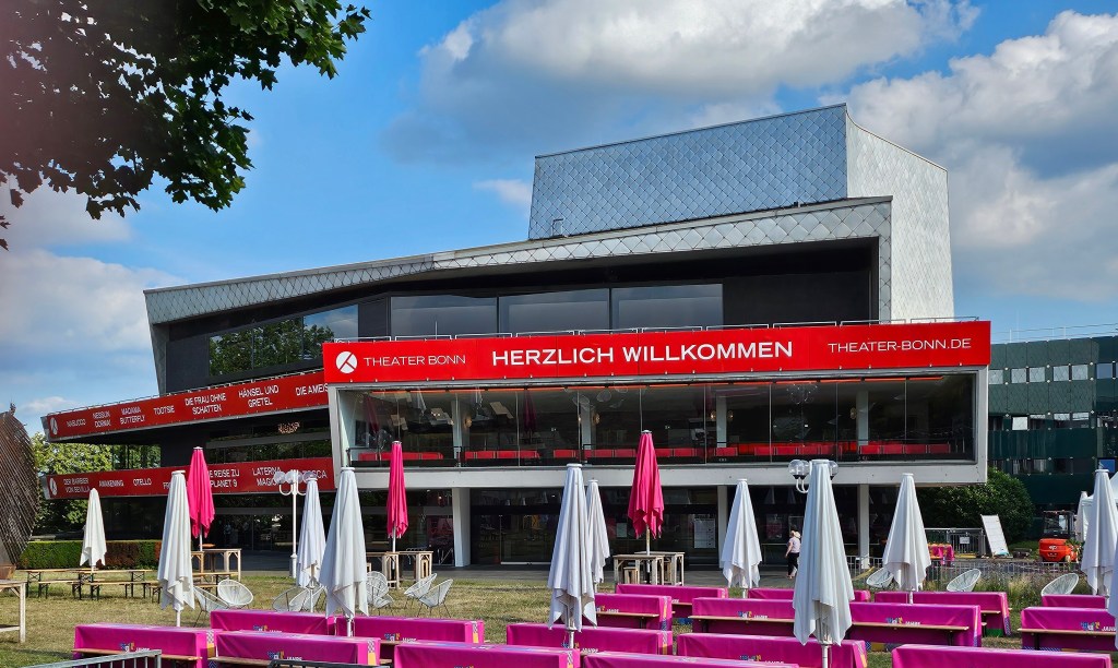 From there I went to Bonn’s opera house, located on the bank of the Rhine next to the Kennedy Bridge. I arrived in good time, so was able to enjoy a Kölsch beer on the outside balcony in the early evening sun. Die Zauberflöte (The Magic Flute) was Mozart’s last opera, first performed in Vienna just two months before his death. There is a connection with Bonn, as Mozart’s widow arranged for the score to be first published in Bonn, shortly after his death.