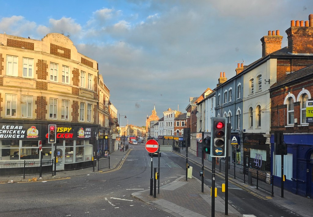 I had hopes of making a tight connection, before the frequency of my next bus decreased from every 20 minutes to every 30 minutes. I arrived at my stop on Western Road in Romford seven minutes early, but a little way down the road from where my next bus was due to depart one minute later.