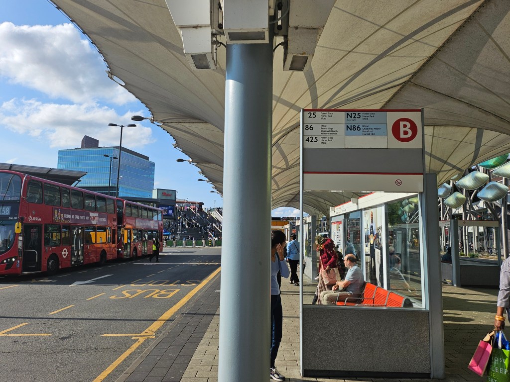 The 25 overlaps with the next bus, the 86, all the way from Stratford to Ilford, so I could have changed at any point along the overlap. I decided to do so at the first opportunity at Stratford bus station, as buses often halt longer at bus stations because of the greater number of people getting on and off, which gives a bit longer to make a connection. However, as my 25 bus pulled into Stratford bus station, I saw an 86 leaving, so I wondered if, had I not got off there, I might have been able to catch it later along the route.