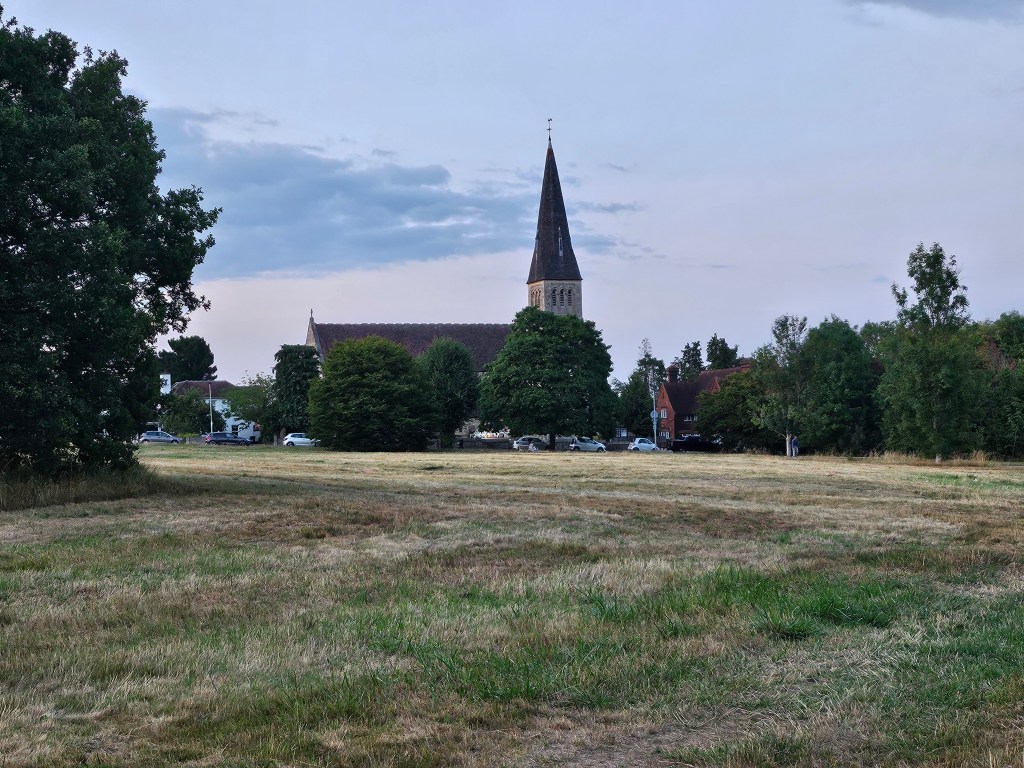 I got up early and left my house just as dawn was breaking to walk to the nearest bus stop on the 179 bus route. This is located on the edge of The Green at Woodford Green and I walked across the grass of The Green near All Saints church to reach it. I got there well before I needed to and was in time to see the earlier 179 bus travelling in the opposite direction, which I would have caught had not the Oasis concert caused me to rethink my plans.