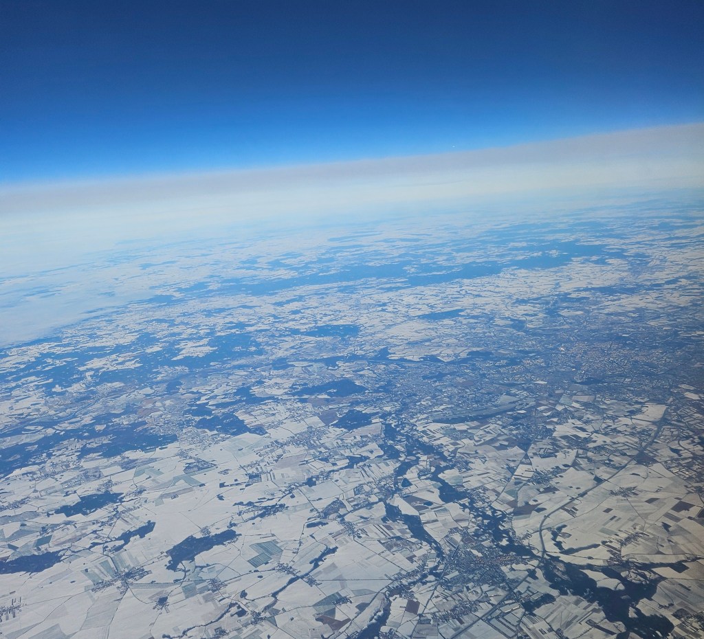 Initially the views from the plane were obscured by cloud, but at the German/Polish border the clouds cleared to reveal a very snowy landscape. From my side of the plane I had a good view of Wrocław, where I had been in 2022. The plane must have had a favourable tail wind, as it landed in Katowice at 13:05, just 10 minutes late. There was a lot of snow on the ground at Katowice airport and the temperature was still below freezing in the middle of the day. Although the plane pulled up next to the terminal building, we still had to be bussed to the entry point for non-Schengen arrivals, so that we could go through passport control.