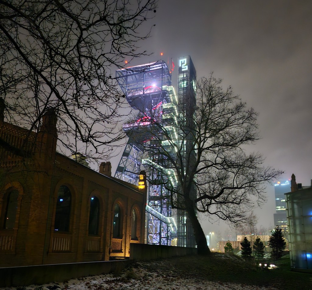 We got through passport control quickly, in time to catch the 13:44 bus to the centre of Katowice, some 45 minutes away. It was noticeably colder than it had been when we left the UK. Buses run half-hourly and ours was crowded. I managed to get the last remaining seat, but my son had to stand. We got off at the first stop for Katowice’s cultural quarter.
